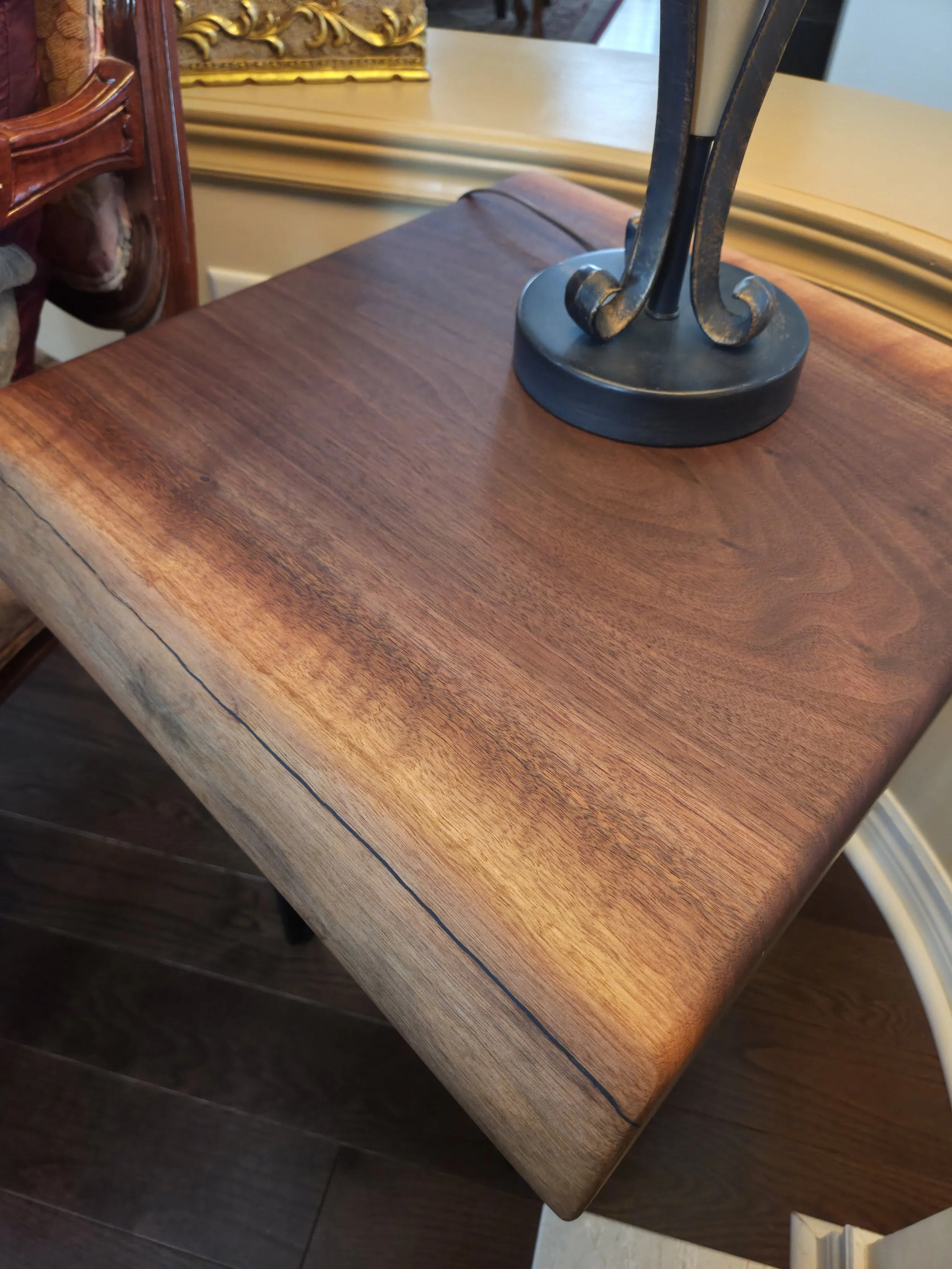 These matching live edge end tables were commissioned to us by our very own Mother. Made from solid black walnut, she wanted something to match her live edge coffee table. We are very proud to have made something for her and are thankful for our moms support!